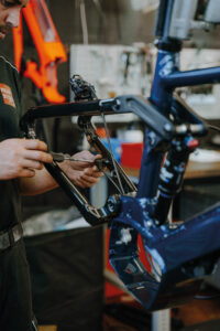 Nach Bestelleingang wird dein Bike in Einzelfertigung montiert. Die Teile werden kommissioniert, Laufräder eingespeicht der Rahmen beschichtet und die Dekore vorbereitet, bevor es weiter in die Montage zum Aufbau geht. Zum Abschluss durchläuft dein Bike noch einer Qualitätskontrolle.
